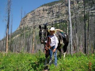 Little Joe came to the ranch at the age of 4 years old, green broke and full of spook and snort. He stood all of 14.3 hands and was about as wide as he was tall. Part Percheron and part Paint, he had stout legs, wide back, and crested neck; he was solid-built, and black & white in color. His face was honest; unsure but kind. Little Joe was full of quirks, but my brother, Cory, loved Joe from the first day. A young boy developing his skills, and a horse developing his, together for several years, they traveled many a mountain trail. They lead strings of pack mules, gathered in horses in the mornings, played around in the corrals, rode bareback, and were pals. They had a strong bond. But as boys do, Cory grew, passing on Little Joe to the next generation. For a couple years, we used him in the string of guest horses. Sometimes he worked well, and other times his quirks would cause people to shy away from him. It left me wondering where Little Joe would fit in the operation from here.